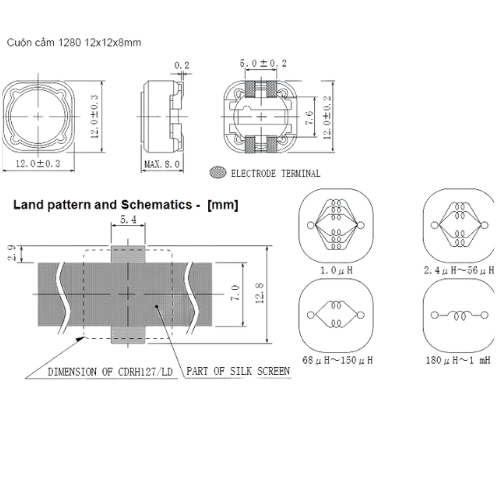Cdrh127 cuộn cảm dán smd 1280-680 68uh 3.2a