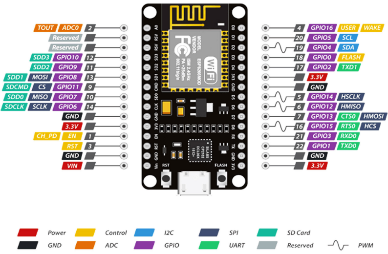 - GPIO tương thích hoàn toàn với firmware - Node MCU.