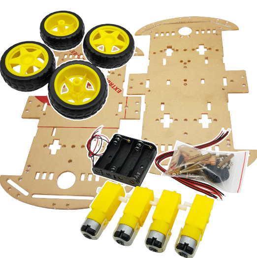 Khung xe 4 bánh 4 động cơ kèm đế pin được thiết kế với ngoại hình đẹp, kết cấu hợp lý, được ứng dụng trong các lĩnh vực như tránh chướng ngại vật, tốc độ, mê cung, xử lý, điều khiển từ xa và các chức năng khác.