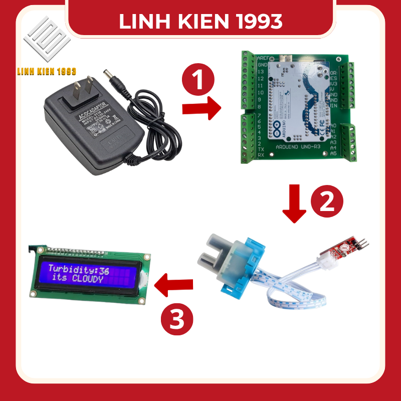 Chuyển đổi tín hiệu: Cảm biến chuyển đổi cường độ ánh sáng thu được thành một tín hiệu điện áp analog. Giá trị điện áp này tỉ lệ nghịch với độ đục của nước (giá trị điện áp thấp hơn khi nước đục hơn).