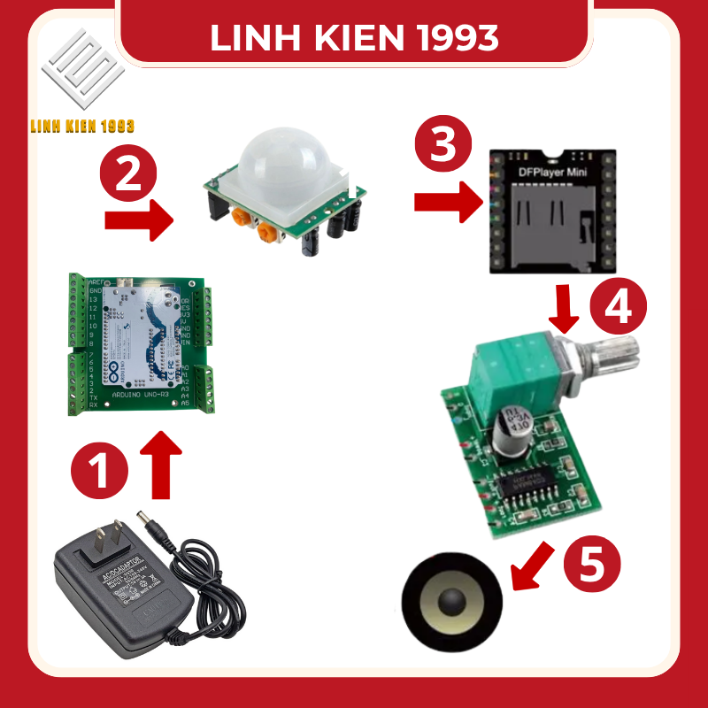 Arduino Uno nhận tín hiệu và kích hoạt module phát MP3, cho phép module đọc file âm thanh (đã ghi sẵn lời nhắc nhở) trong thẻ nhớ microSD.